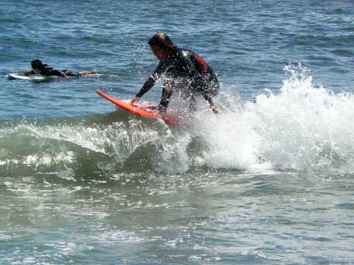 小波に苦労するショートボードを尻目に、