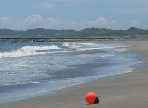 海岸に赤いものが一つ