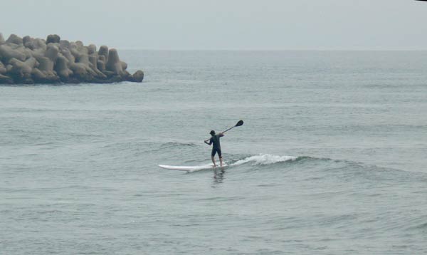 ファミ前と海水浴場の中間で、パドルボードの方、発見!