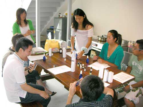 プロボディボーダーとしてコンテスト活動中、アロマテラピーがスランプから脱出する助けになったという実体験もあり、リラックス・ストレスケアに役立つアロマテラピーレッスンでした。