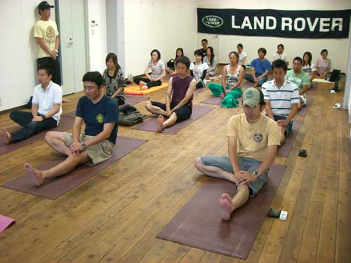 上の写真は、そのパーティーのメニューの一つのメンタルヨーガレッスンです。インストラクターは(写ってないんですが・・・)湯倉知江さん。ストレスの多い社会人にピッタリな、メンタル面も強くしてくれるヨガです。