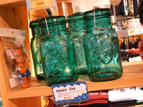 ガラスの密封できるビンです。透明なガラスより、この緑色がやすらぎます~