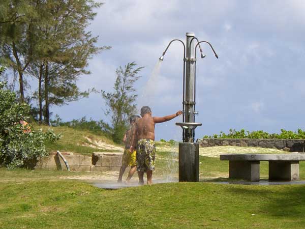 このビーチには芝生のきれいな公園が付いています。そこにはシャワーもあります。