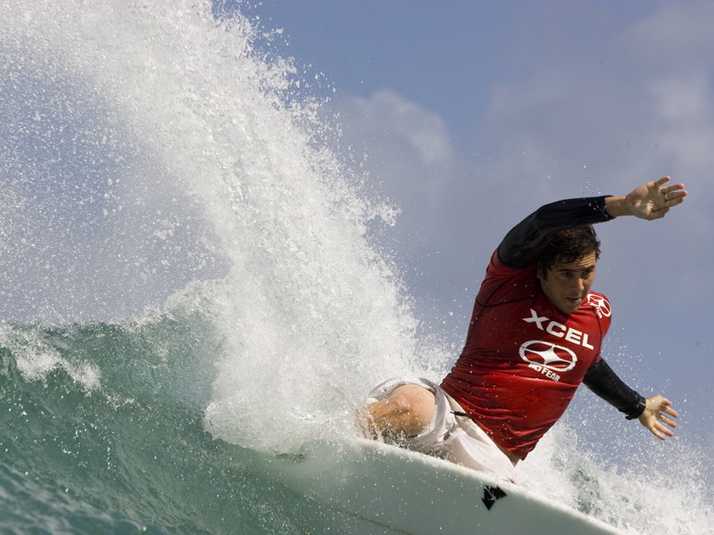 この大会には、2000年度ワールドチャンプであり、1992年のエクセルプロ優勝者でもあるサニー・ガルシアもエントリー。なんとHICジャパンのライダー山田恭平プロが同じヒートに!サニー・ガルシアは堂々1位でラウンドアップ。山田プロも3位に食い込み、ラウンドアップ