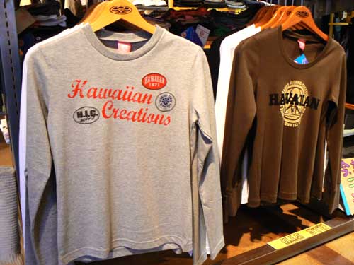 棚上段の左側はフード全部が閉じれるほど長いファスナーがついた遊び心満点のパーカー。12,390円。右側のプリントのチェック柄とハイカラーがポイントのパーカー。13440円