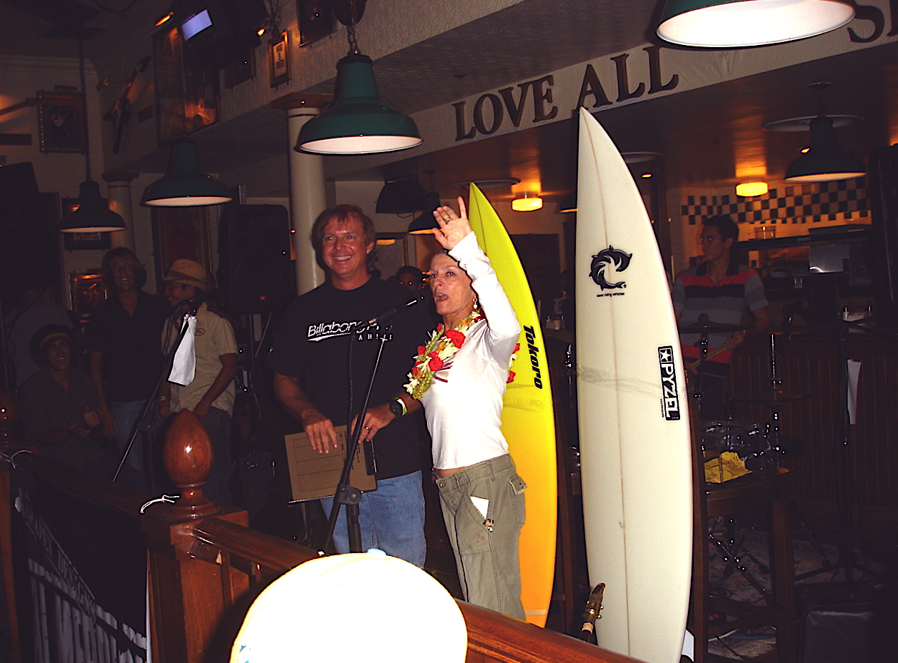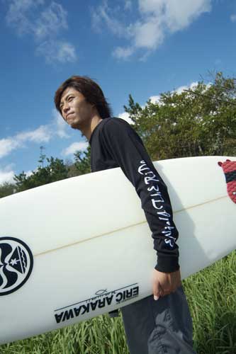 山「東浪見で行われたWQSで2位になったときは一宮駅前の宝亭で祝賀会。ランス・ジェントリーやFUTUREの井上さんも一緒に一升瓶をまわしながら大酔っぱらい。最後に一宮の駅前で集合写真。知らない間にみんな頭に神風のはちまき!このときジェイソンがオレに一言。2位だったけどこれで良かった?だって。ほんとにいいやつなんだ。」