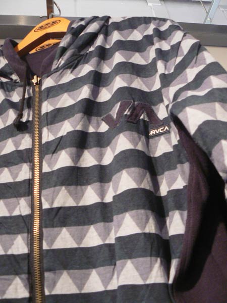 右の白のパーカーはO'neillです。プルオーバータイプです。リブに並んだたくさんのボタンがかわいいです。薄手の生地でこちらも秋にピッタリ。値段は7,245円