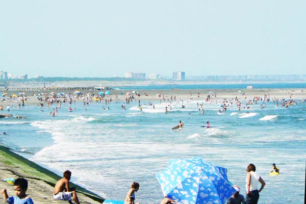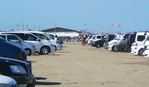 も大賑わいです。インサイドではボディボードで遊ぶ子供たちがたくさん。湘南ほどではありませんが、混んでます。駐車場も車