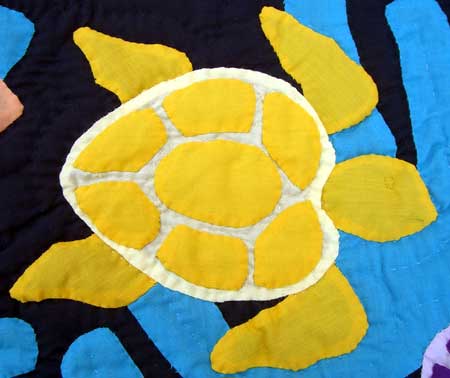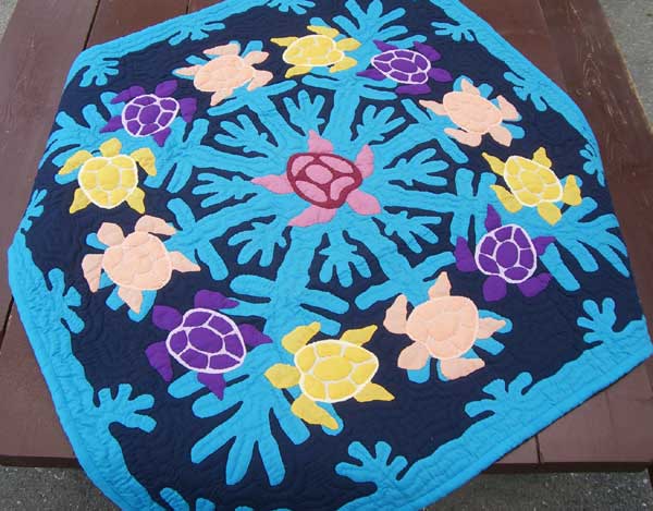 こんなハワイアンキルトが部屋に飾ってあったら、まるで海の中をウミガメと一緒に泳いでるみたいです。