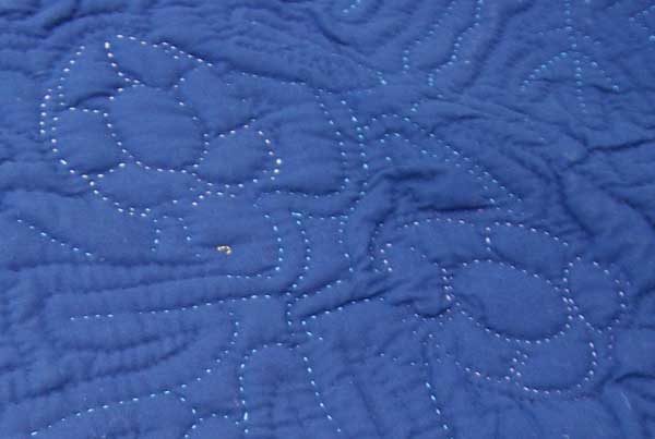 このハワイアンキルトは一針ずつ手で塗っています。裏を見ると、その地道な縫い目が良くわかります。