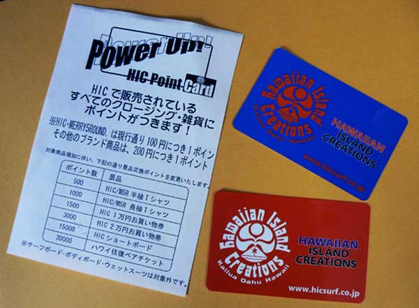 HICでは新品サーフボード・ボディボードを購入されると、自動的にボードメンバーになれます。そのボードメンバー様が、オレンジ色のカードなんです。(ボードメンバーは、一宮店の駐車場